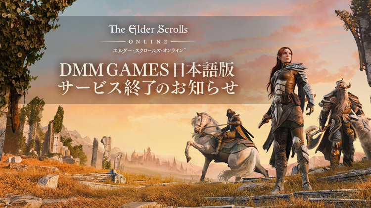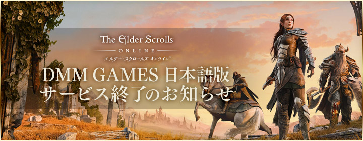 2016年6月のサービス開始より10年、長年にわたる温かいご愛顧に深く感謝申し上げます。 この度、2026年7月21日をもちまして、DMM GAMES版のサービスを終了することとなりました。 今後はZeniMax版へアカウント移行を行うことで、引き続きタムリエルでの冒険をお楽しみいただけます。 アカウント移行・サービス終了に関する詳細につきましては、今後順次公開してまいります。
