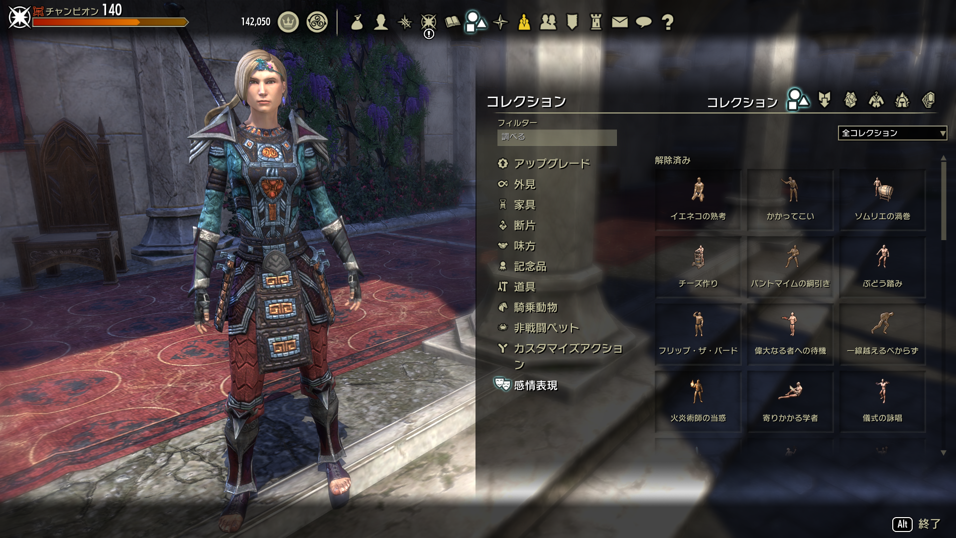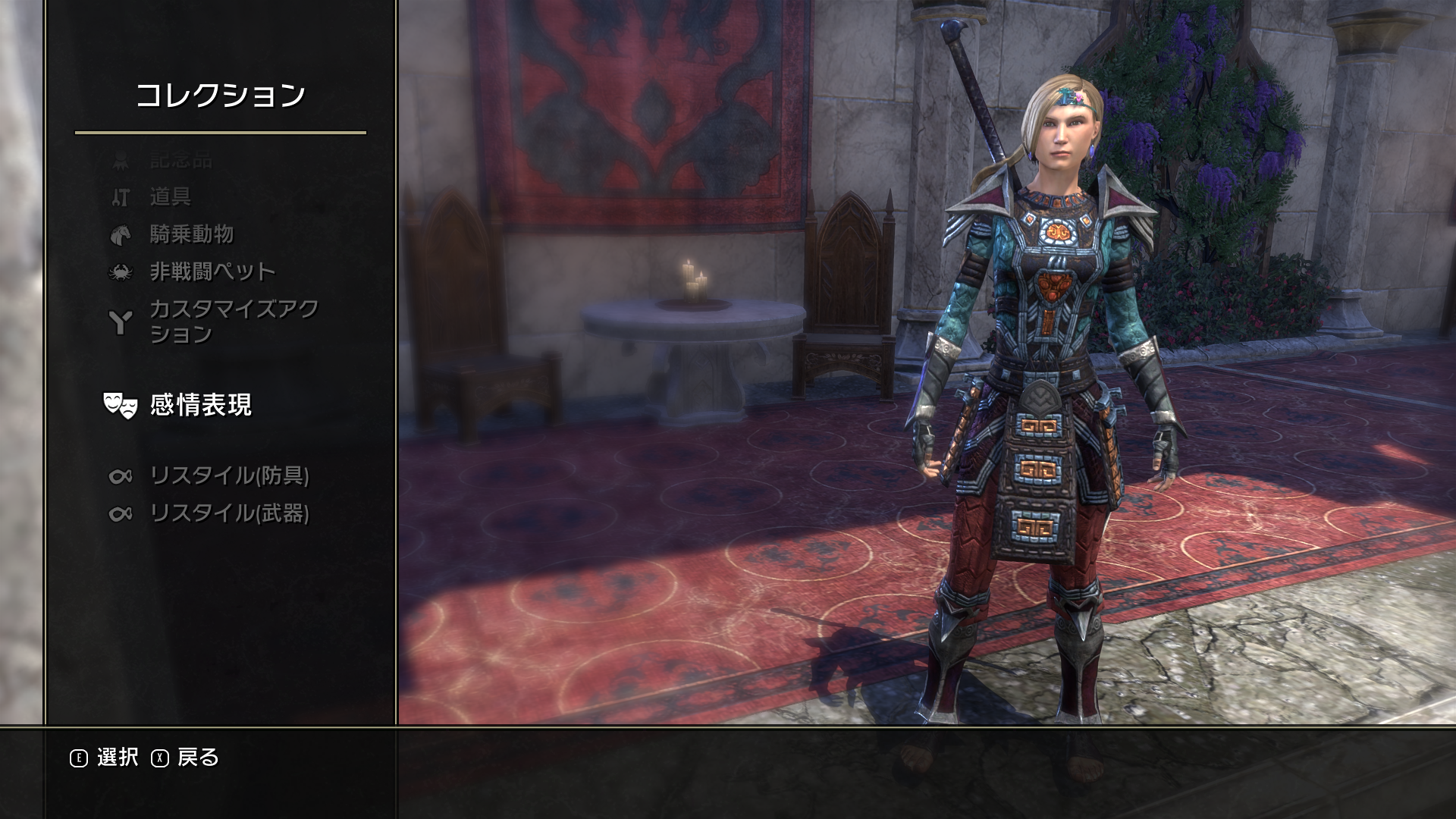 1)「U」キーを押してコレクションを開き、最下部の「感情表現」にカーソルを合わせて左クリック