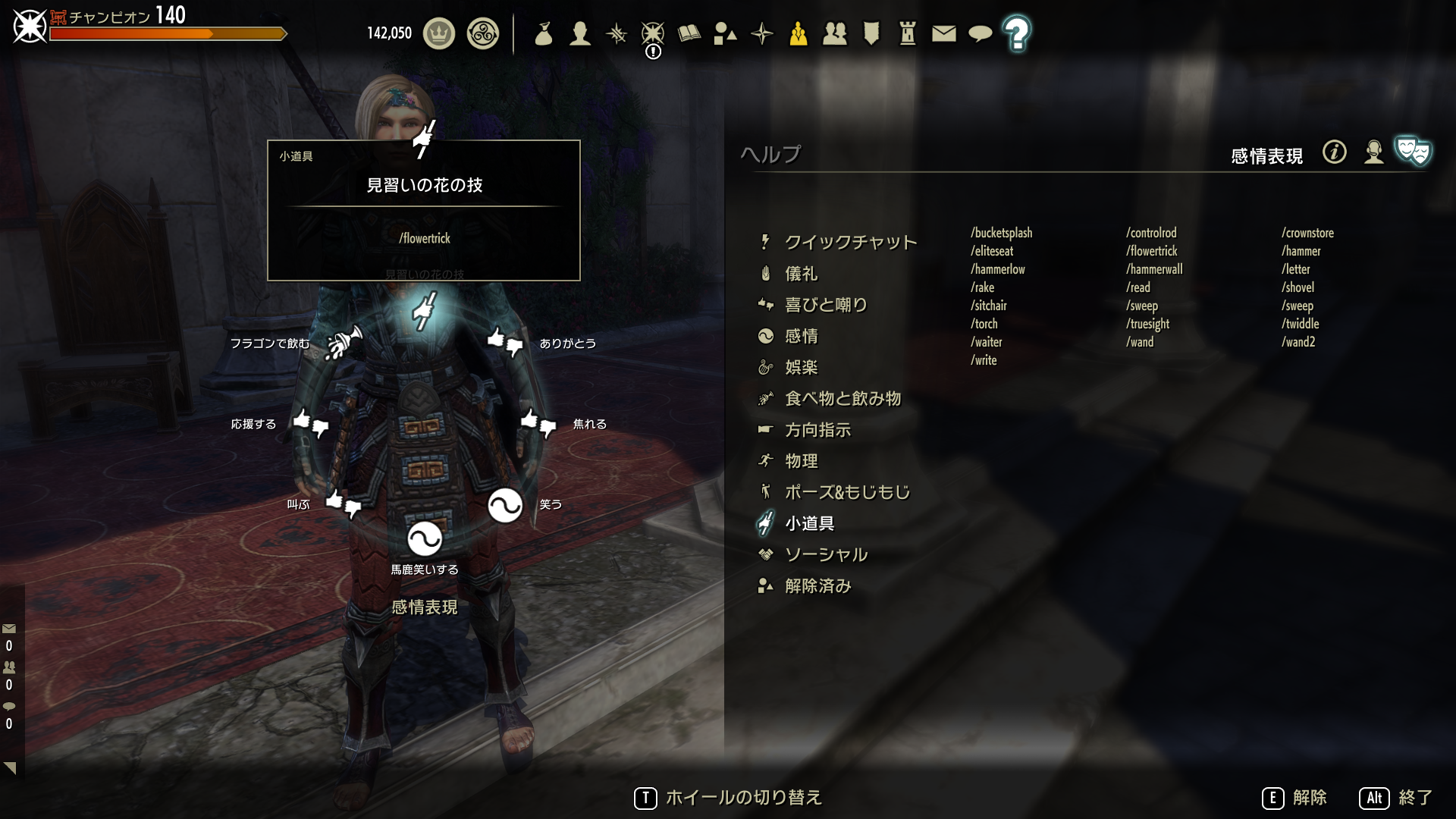 2)設定する感情表現(今回であれば『見習いの花の技』)にカーソルを合わせ、「F」キーをおします