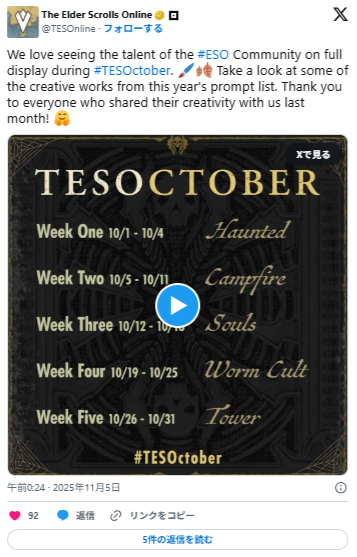 コミュニティの素晴らしいアーティストやクリエイターの皆さん、作品をシェアしていただき、本当にありがとうございます! もっと見たいですか? X(元Twitter)とInstagramでハッシュタグ#TESOctoberを使って作品を探すのをお忘れなく!