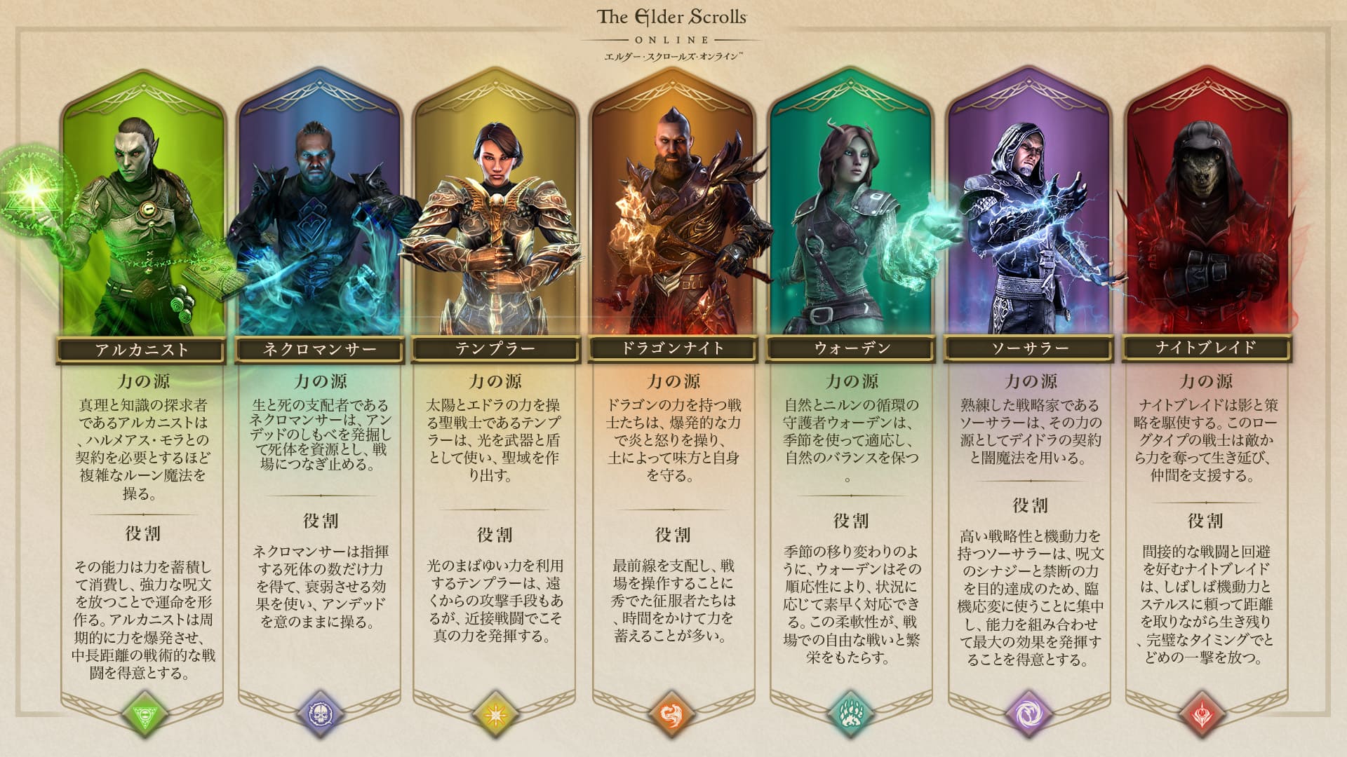 この秋の初めに、ESOのクラスのアイデンティティに関する問題点や全体的な印象などについて、皆さんにご意見を伺いました。私たちは長年のプレイヤーからのフィードバックに対応し、全体的な外見や雰囲気、戦闘のバランスを改善する取り組みの一環として、ESOのクラスを活性化する長期的なプロジェクトに取り組んでいます。