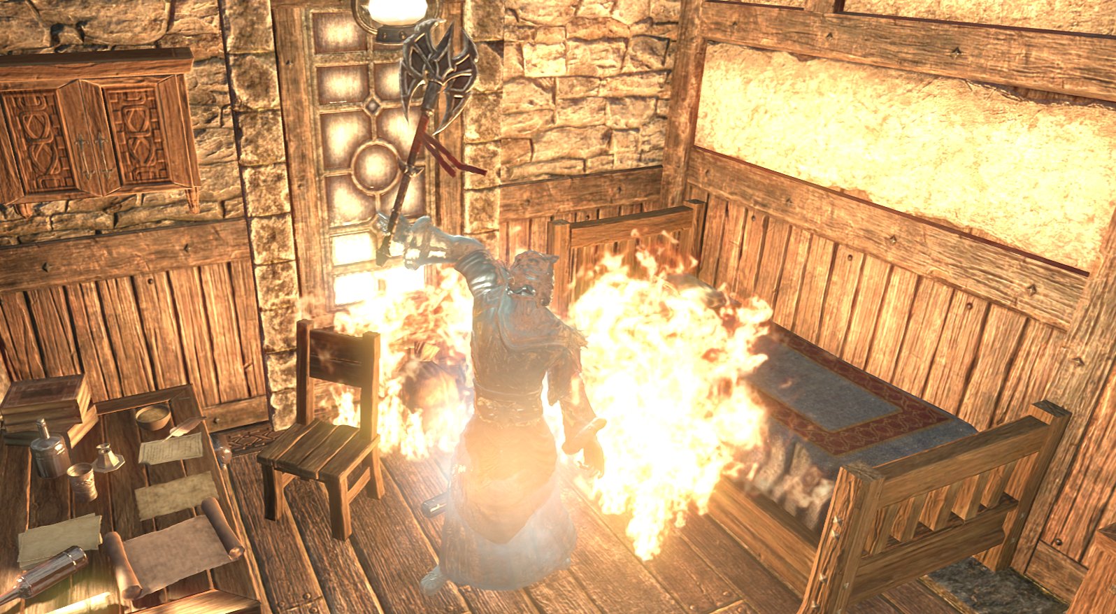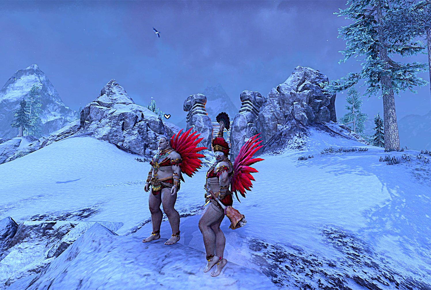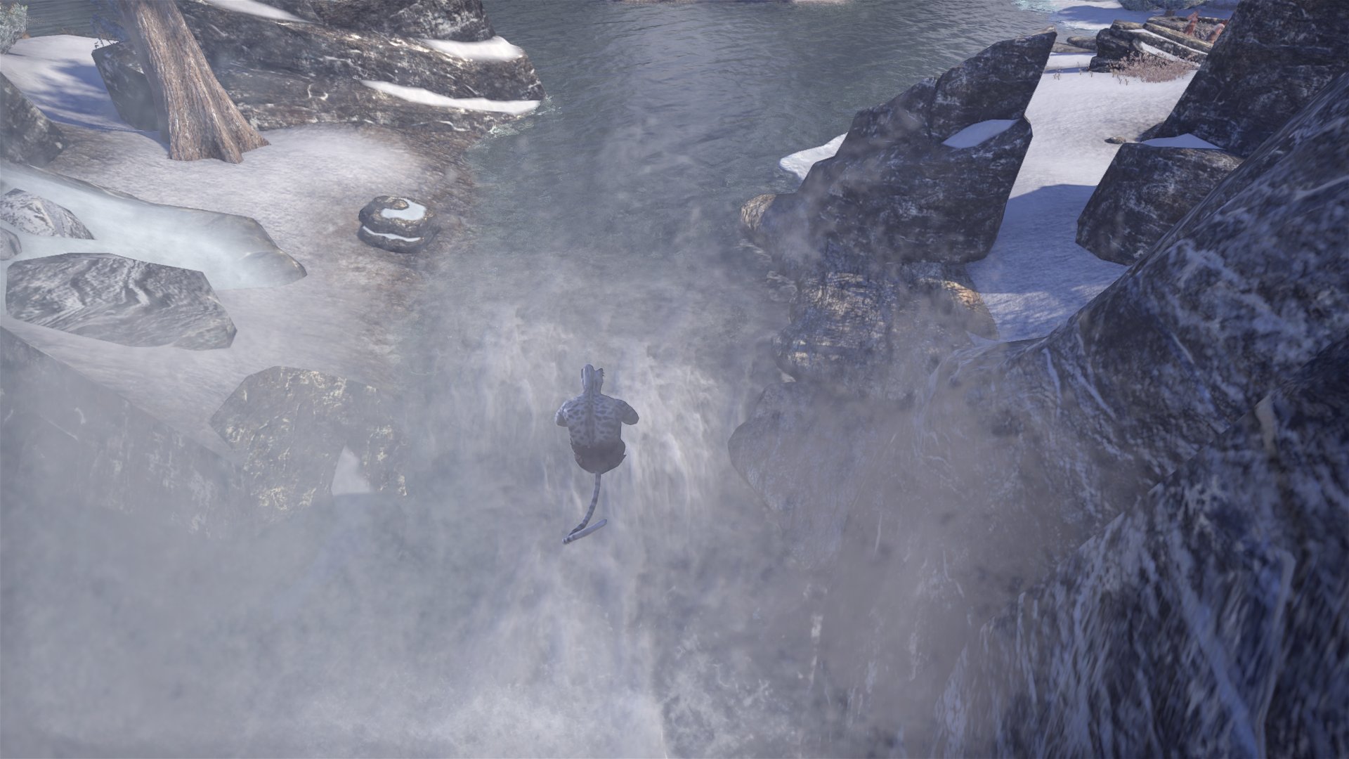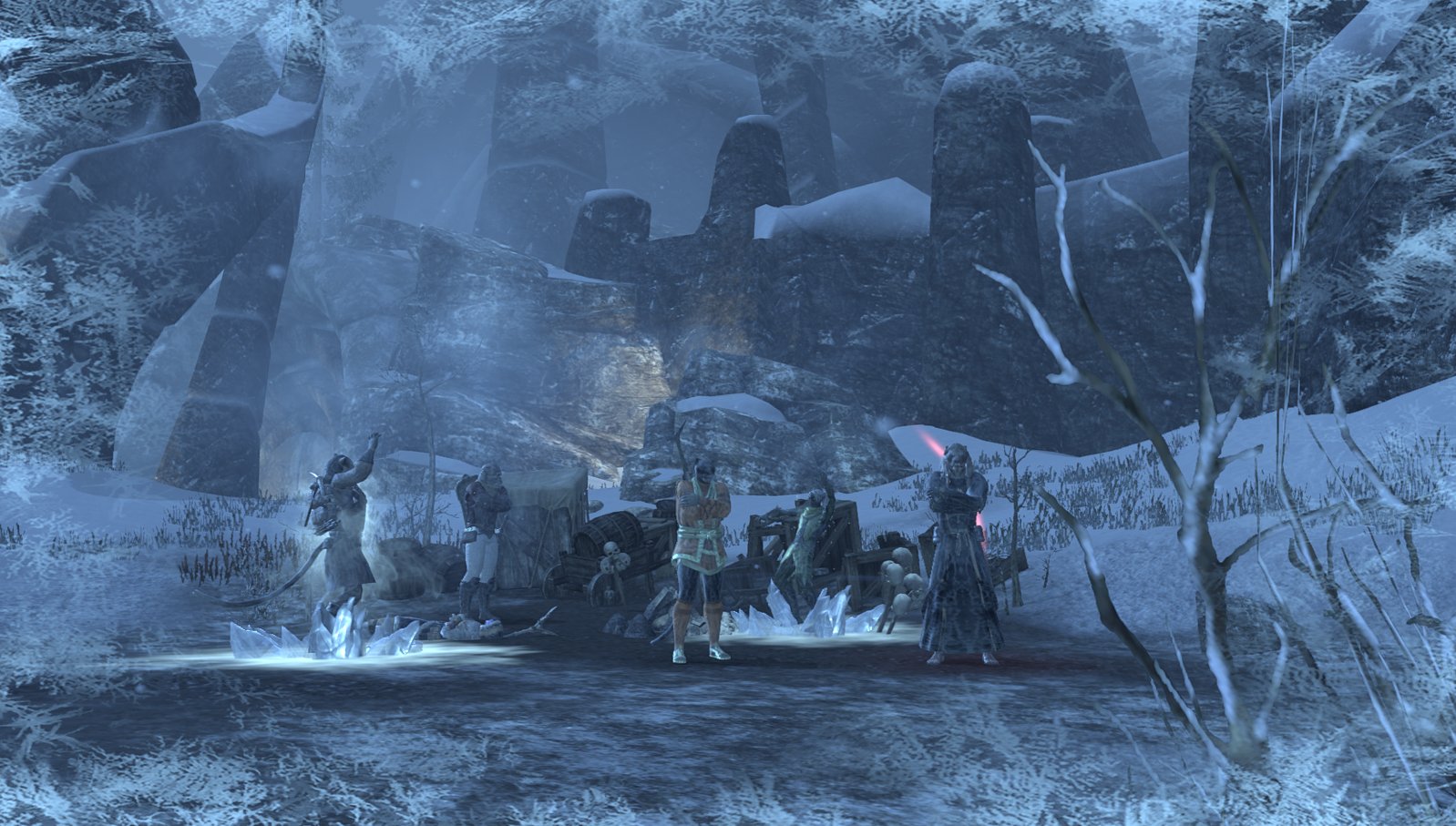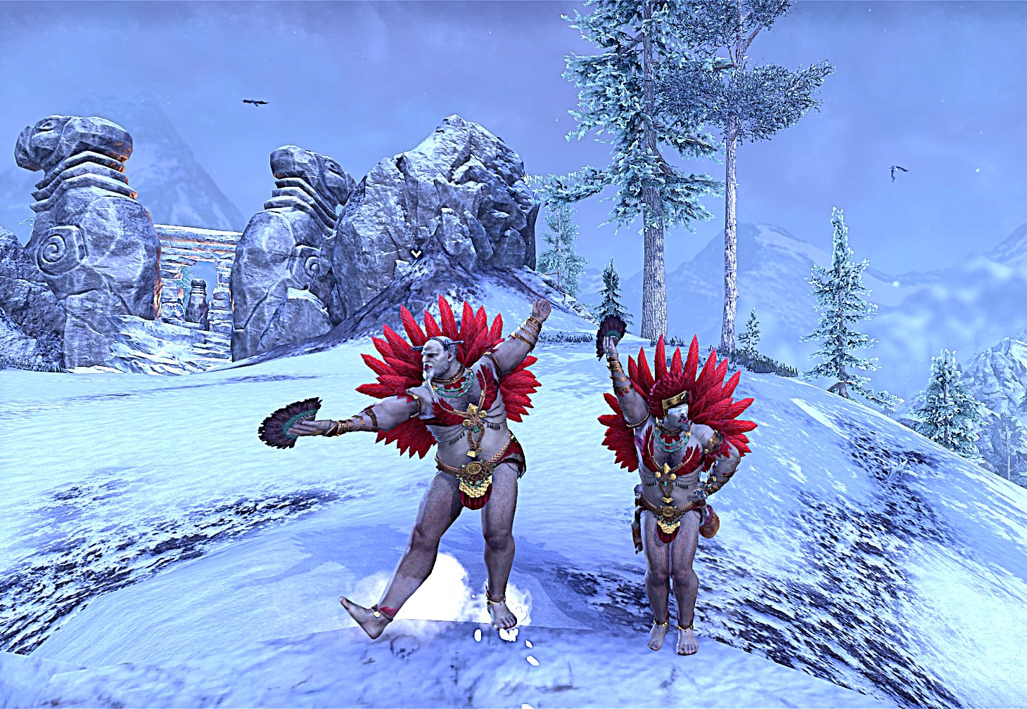 コメント:人生初の雪国で冬を感じるアッシュランダー。 溶岩には慣れてるけど雪には弱い。 ノルドが上半身裸とか信じられない。 あいつらヤバい。 早くストンフォール帰りたい。