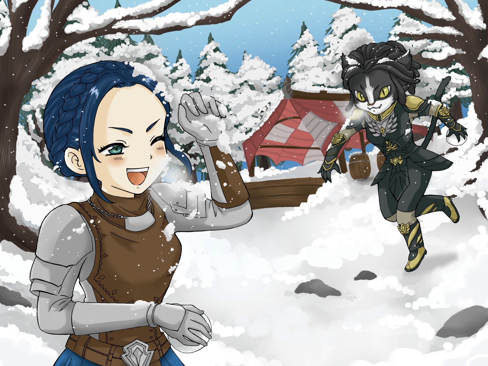コメント:新しく追加された雪玉投げのイベントを楽しむシーンを描きました。