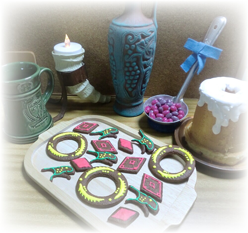 コメント:「ニュー・ライフのクッキーとエール」(グアル、インペリアルレッドダイアモンド、ウロボロス)「ニュー・ライフのひしゃく」(グミキャンディー)「スイートロール風シフォンケーキ」の再現料理