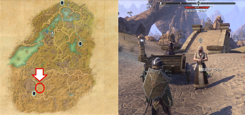 バンコライの下記位置付近にいる『星読みヘラルド』に話しかけると、クエスト『星読み』を受注できます。