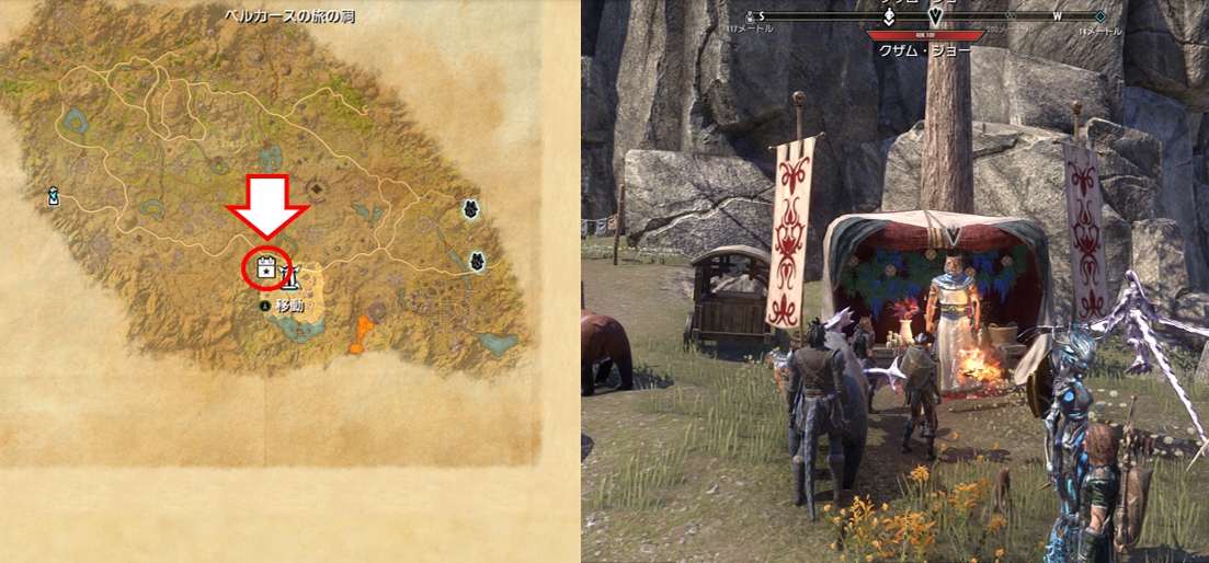 4)クラグローンに到達した後は、ベルカースの街の左下付近のイベント会場にいる『クザム・ジョー』からハートの週のイベントを受注できます。
